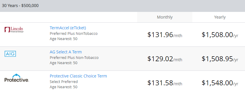 Again, you can see how important getting life insurance earlier than later will save you an abundance of money.