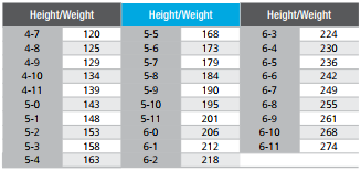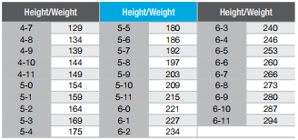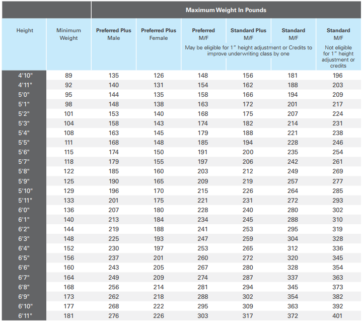 Below are height and weight guidelines for life insurance.