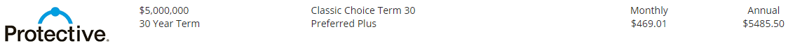 | 35/Male | 10 Year Term | $1,471.31 | $16,815.00 | |