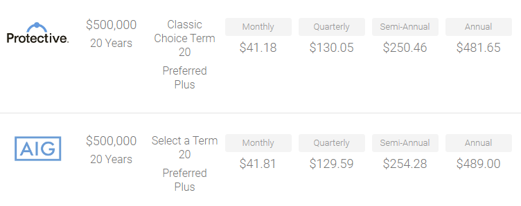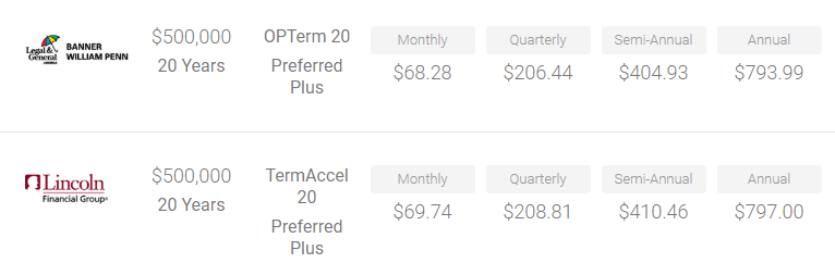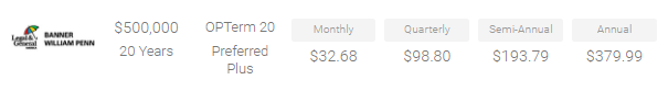 How much is a $500,000 life insurance policy? See life insurance quotes below: