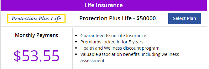 Age 35, Protection Plus Life, offers Guaranteed acceptance 5 yr renewable term.